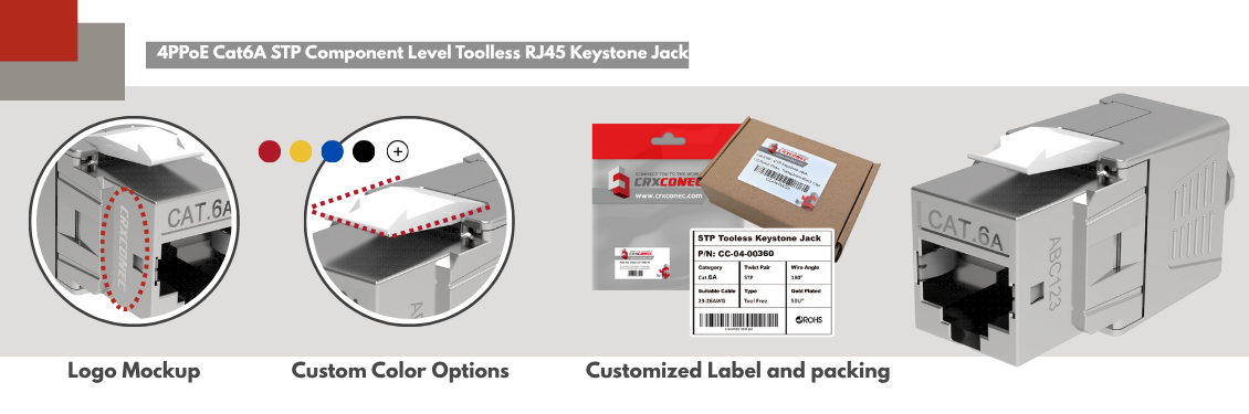4PPoE Cat6A STP компонентний рівень, безінструментальний роз'єм RJ45 Keystone| Високоякісні структуровані кабельні та оптоволоконні рішення відCRXCONEC