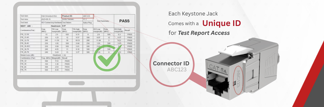 Потрібен високопродуктивний безінструментальний роз'єм Keystone, який забезпечує швидкість, точність та повну відстежуваність? Безінструментальний роз'єм Keystone Component Level Cat6A STP створений для професіоналів, які пріоритезують ефективність та надійність. Кожен пристрій на 100% протестовано окремо, а унікальний ідентифікатор роз'єму надруковано збоку, що забезпечує миттєвий хмарний доступ до детального звіту про випробування, включаючи ключові параметри, такі як NEXT та втрати на відбиття. Повністю відповідає стандартам ANSI/TIA-568.2-D та ISO/IEC 11801, цей безінструментальний роз'єм Keystone Component Level Cat6A STP RJ45 гарантує, що кожна установка відповідає найвищим стандартам якості, надаючи установникам та інтеграторам повну впевненість у його роботі.